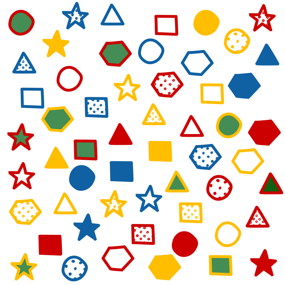 - Shape: circle, square, triangle, star, hexagon